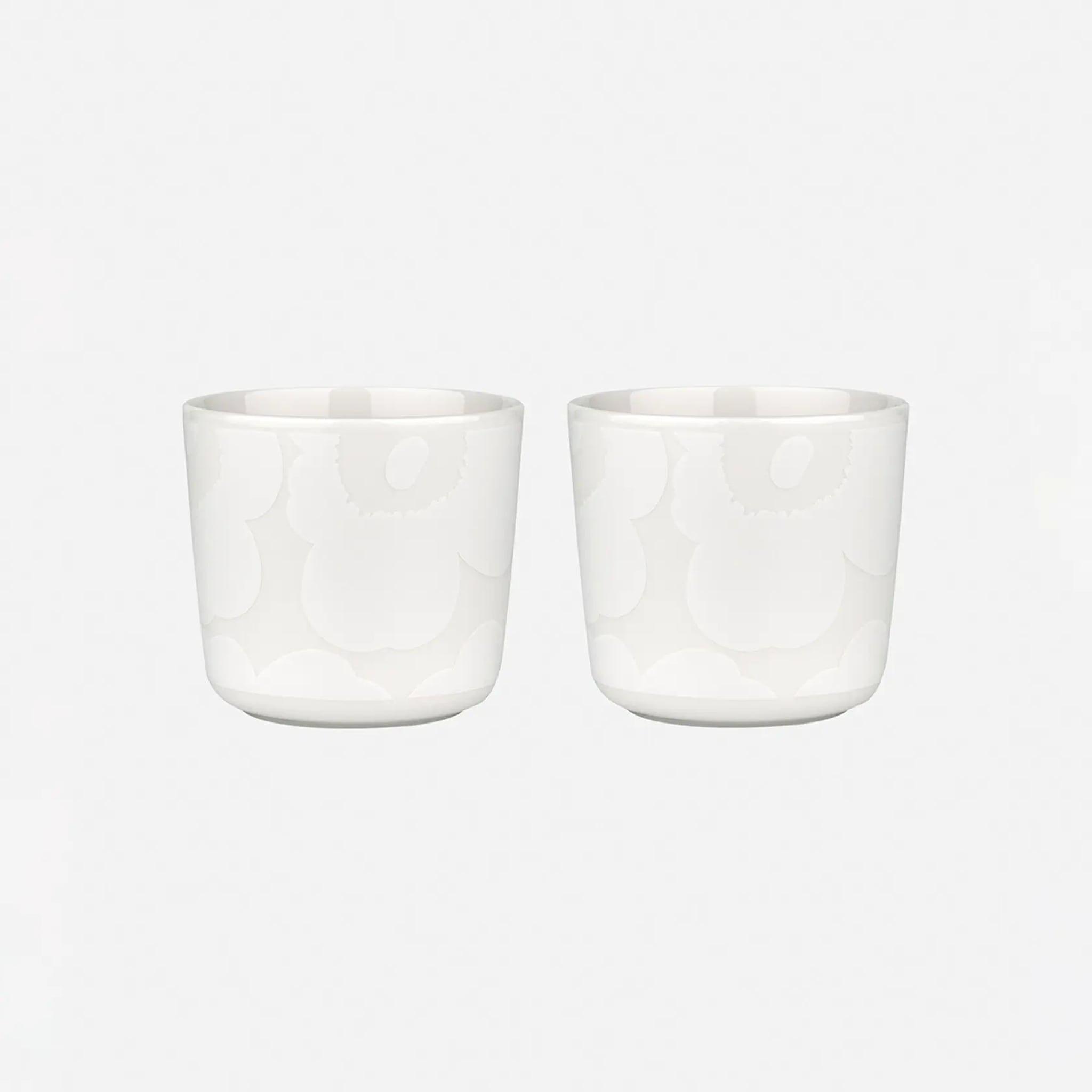 洗練されたムードのオフホワイトのUnikko柄プリントのコーヒーカップセット。ハンドルのないシンプルなデザイン。大胆に配されたワンカラーのケシの花のモチーフが印象的なデザイン。電子レンジ、オーブン、食洗機で使えて機能面も優秀。テーブルコーディネートにマッチするスタイリッシュなアイテムです。