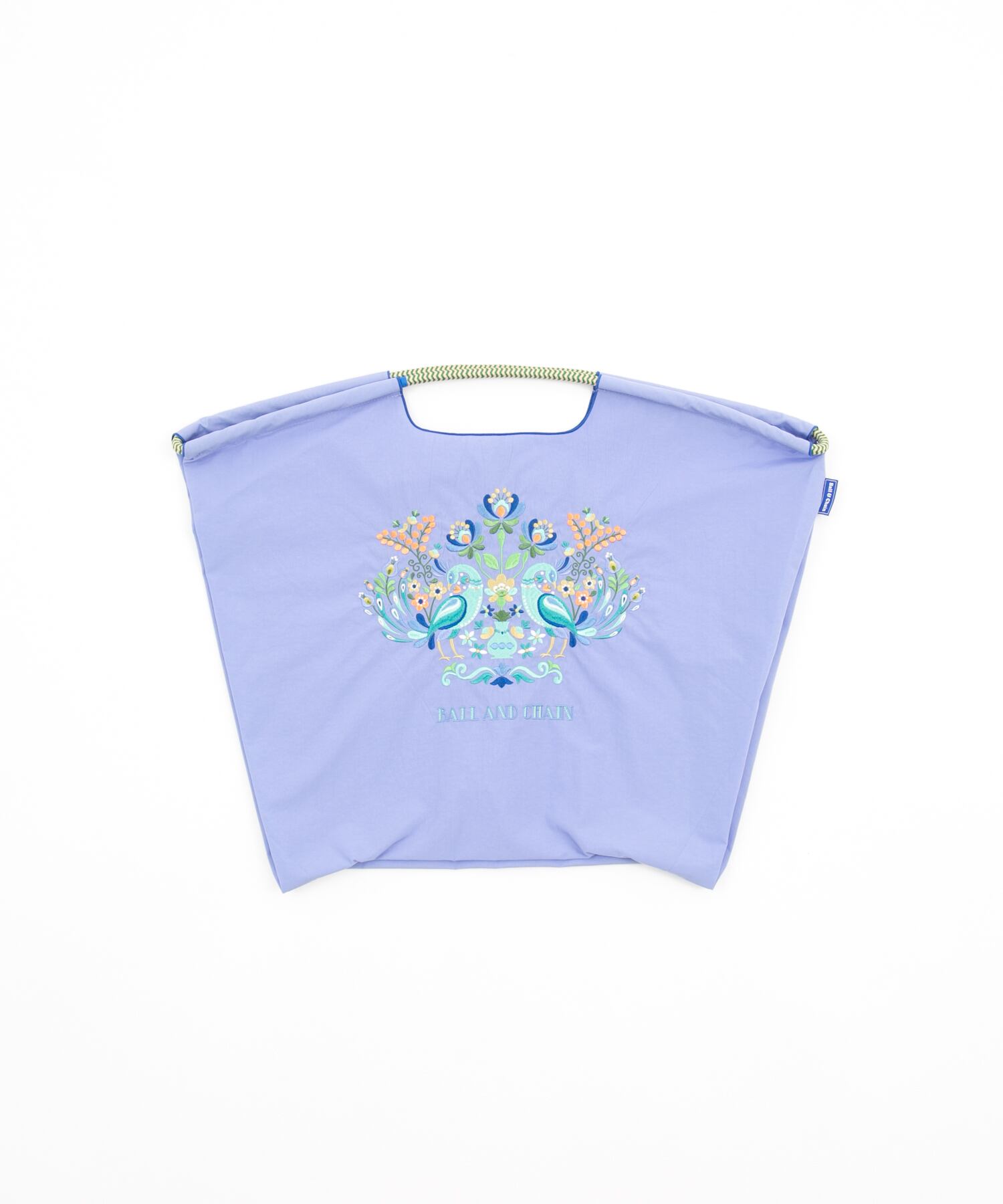 耐久性、撥水性に優れた厚手のポリエステル素材に、グラフィックデザインをそのまま「刺繍」で施すことで、高級感がありデザイン性の高いバッグとなっています。丸く折りたたみ付属のゴムバンドでとめると手のひらほどのコンパクトサイズになるため、持ち運びにも便利です。普段のお買い物はもちろん、エコなプレゼントとしてもおススメです。