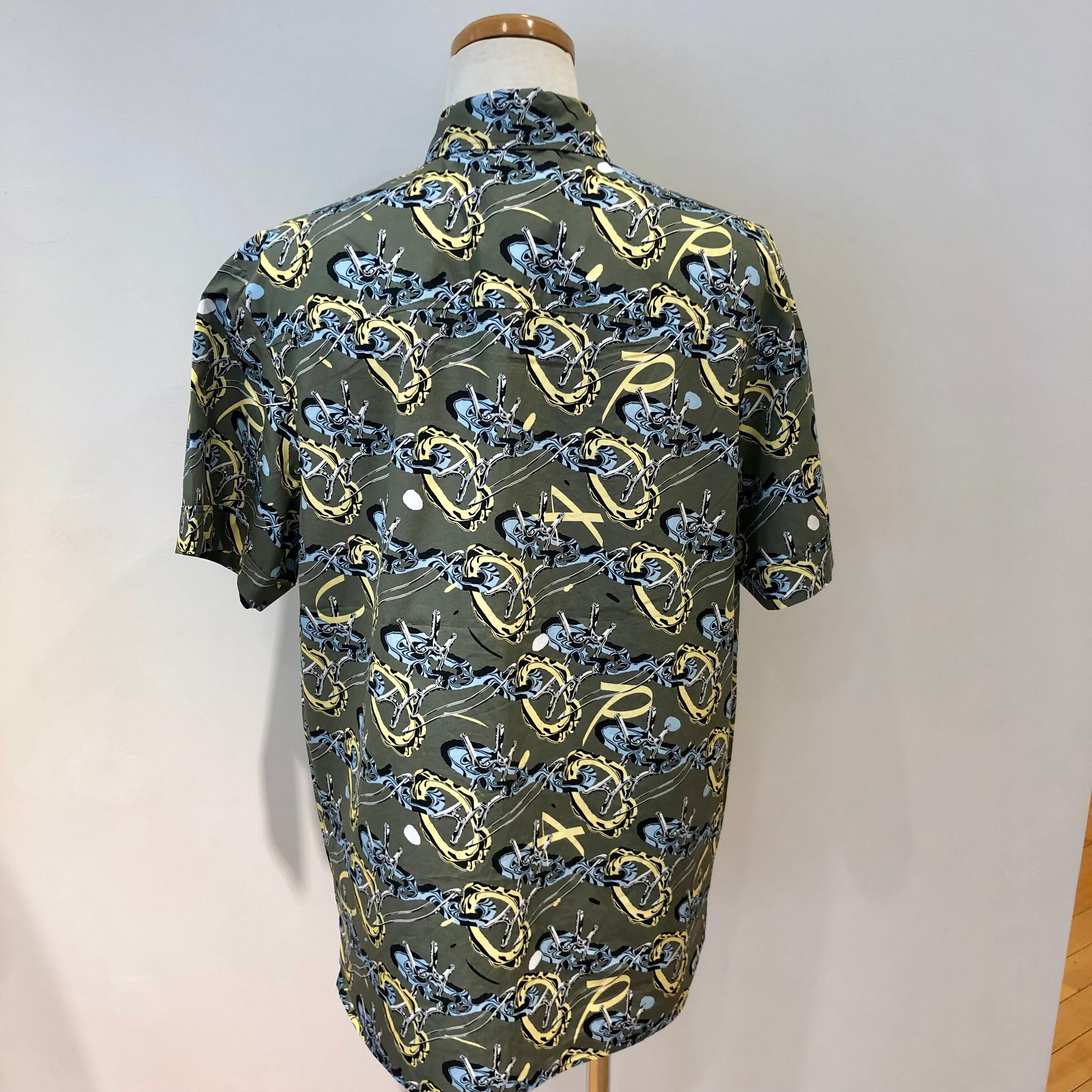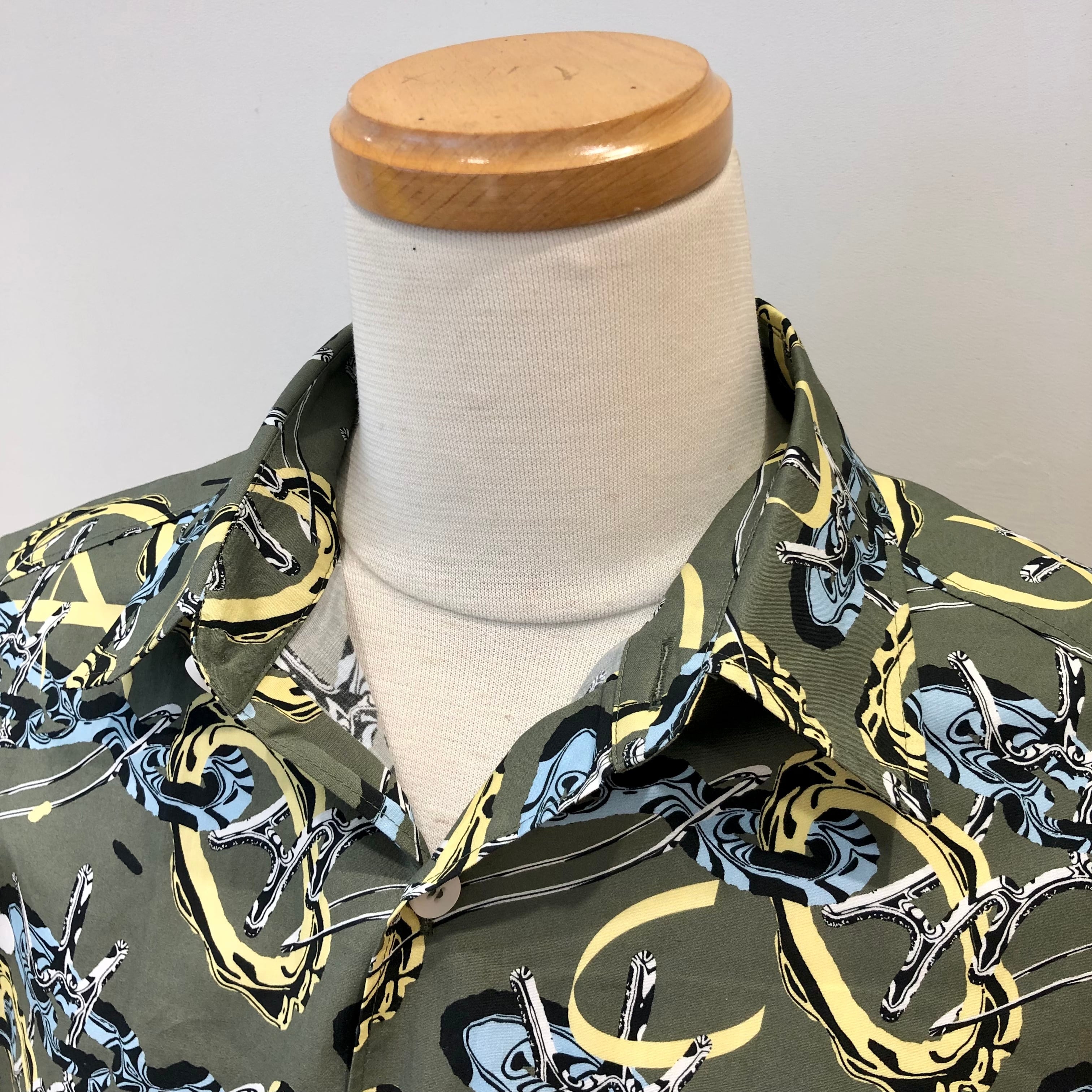 オリジナルモチーフ入りコットンポプリンの半袖シャツ。