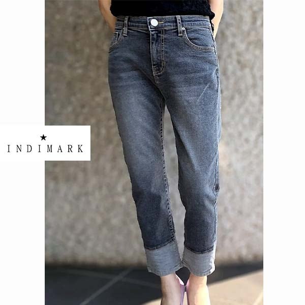 INDIMARK インディマーク/折り返し風デザイン ボーイフレンドデニム グレー WJ045