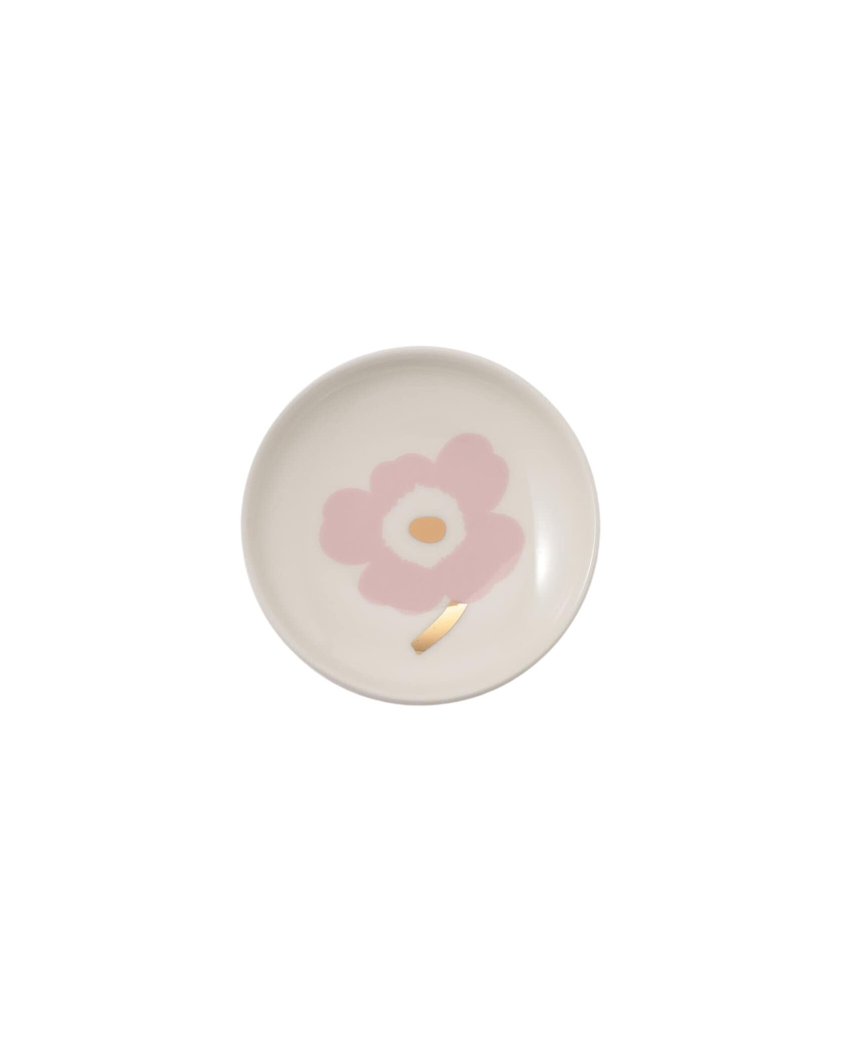 Marimekkoを代表するUnikko柄モチーフをセンターに配した、可憐なデザインのプレートセット(8.5cm)。ゴールドカラーが華やかなアクセント。