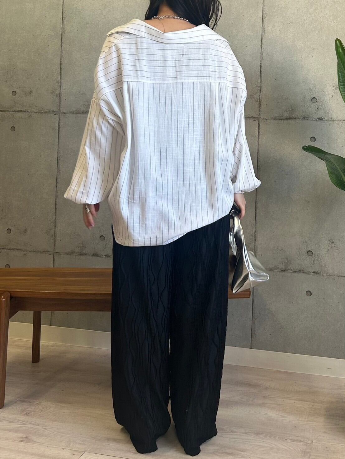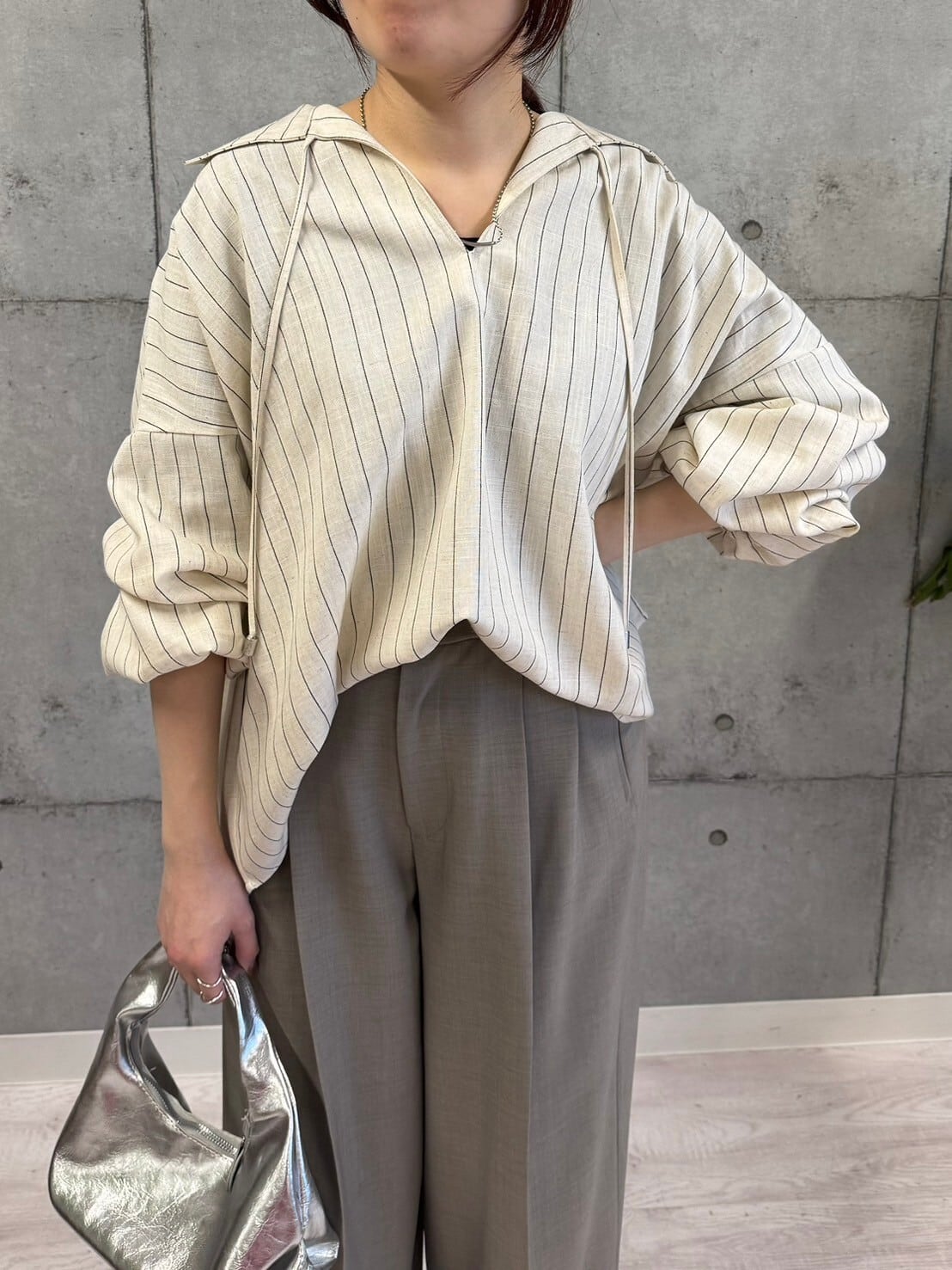 ROSIEE/衿紐付きストライプシャツ