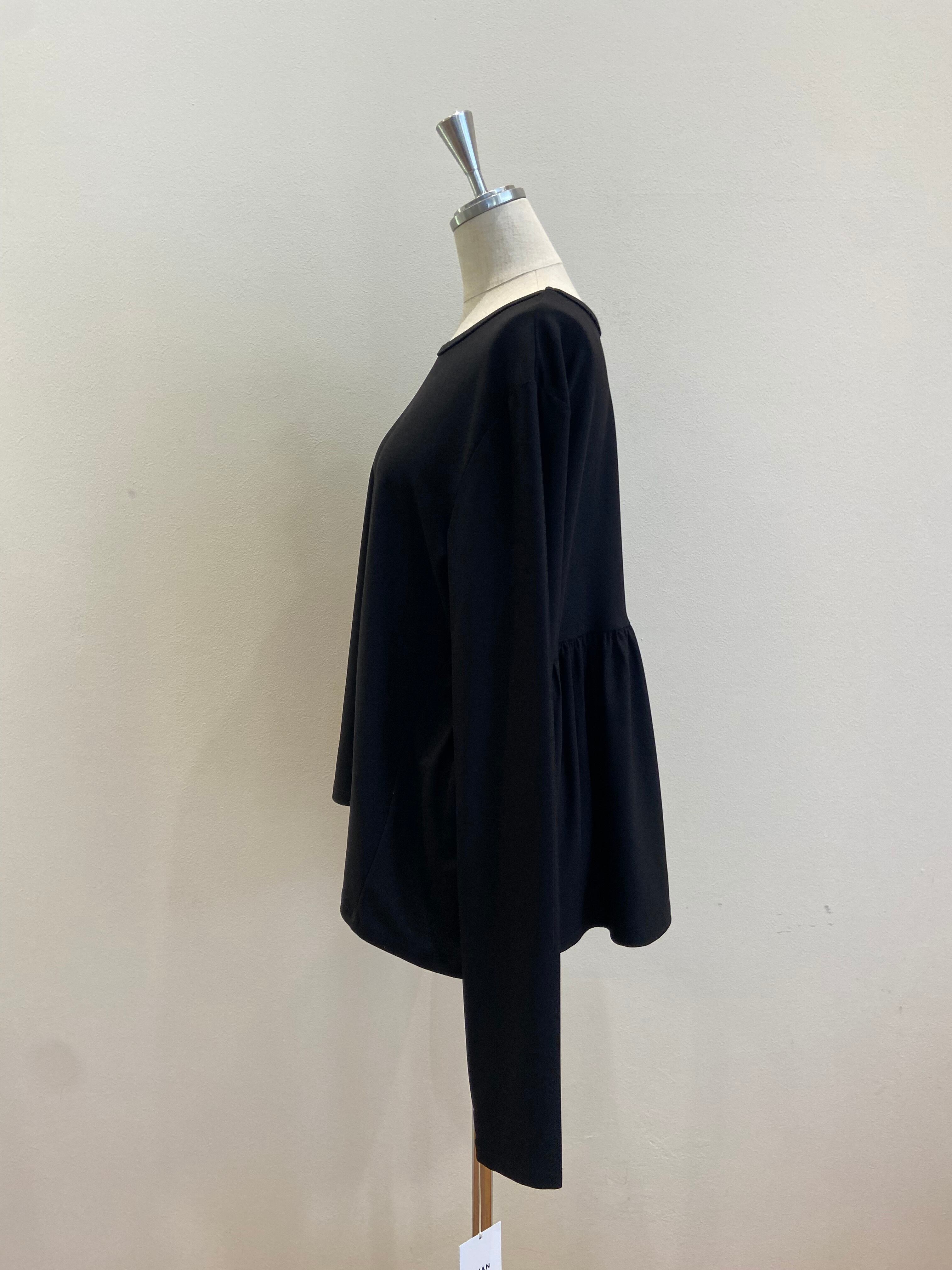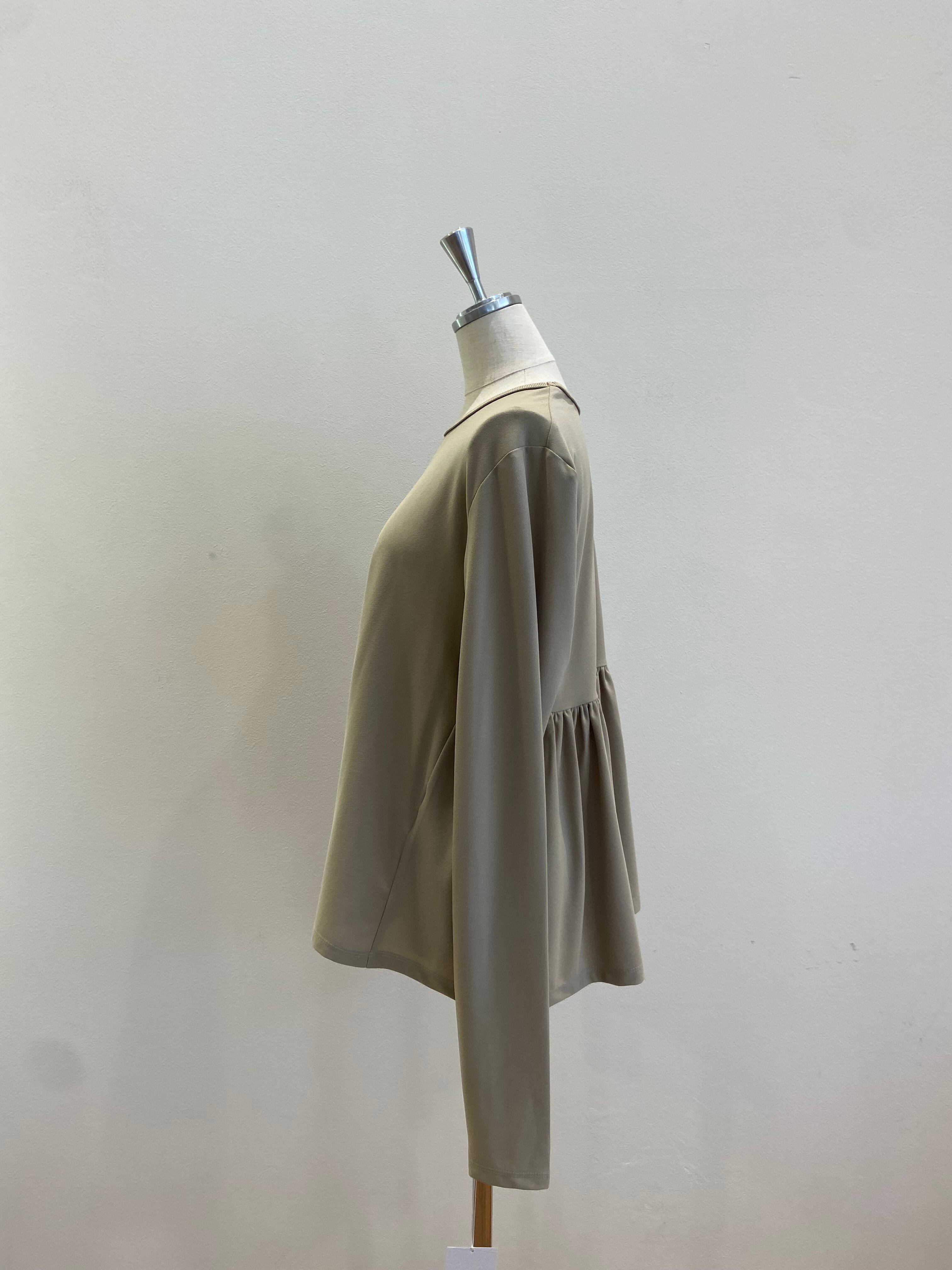 一枚でもレイヤー用としても万能なジャージー素材のバッグギャザーデザイントップス